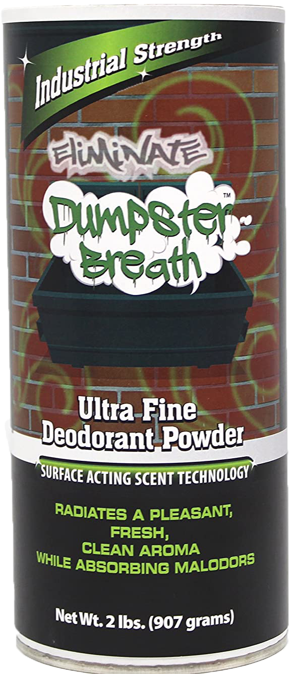 Dumpster Breath™ is a non-water-soluble granular powder that neutralizes odors on contact. It doesn’t wash away in the rain like baking soda, and it doesn’t just mask odors with perfume. It eliminates the odor at the source.